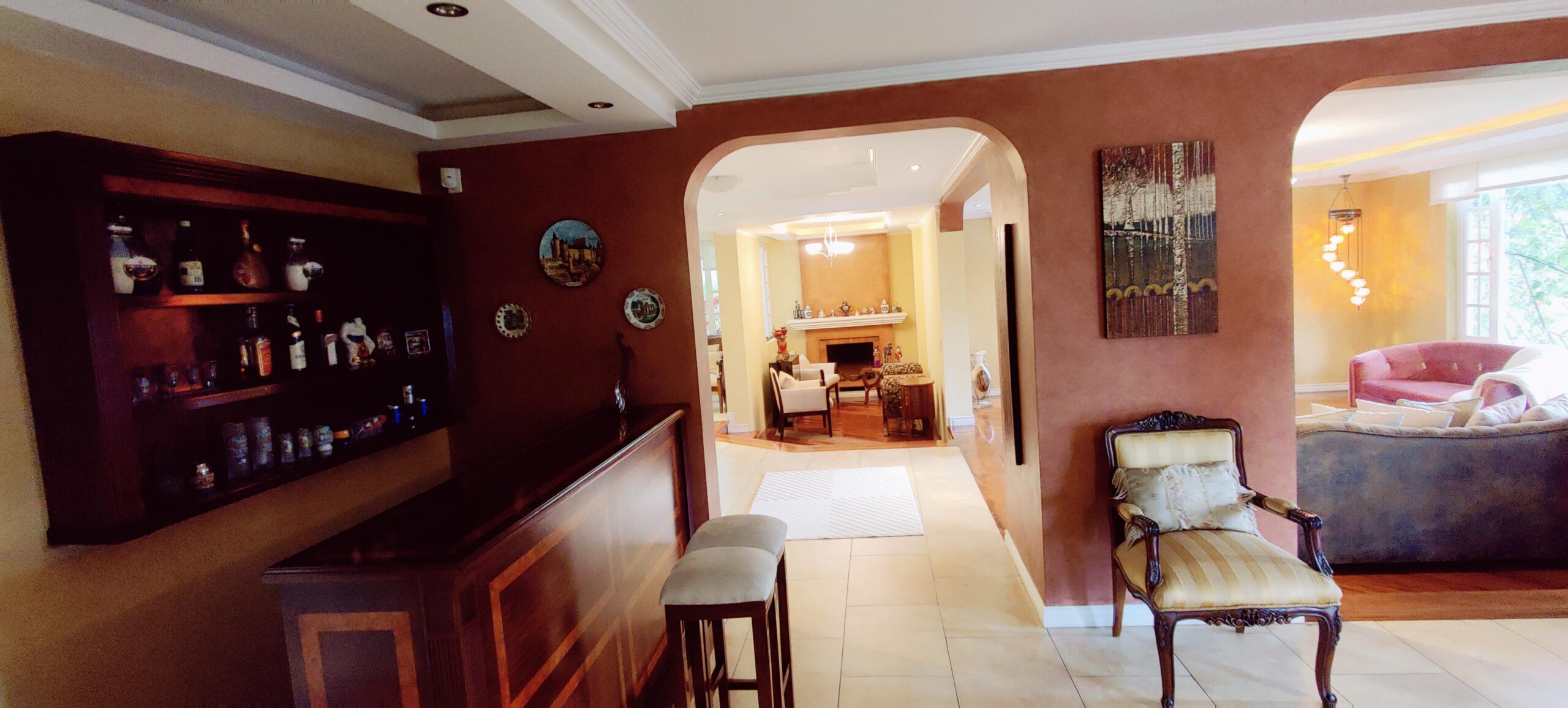 Elegante casa en venta en la prestigiosa urbanización Cunucbamba, una de las mejores zonas de Cumbayá. La propiedad cuenta con: