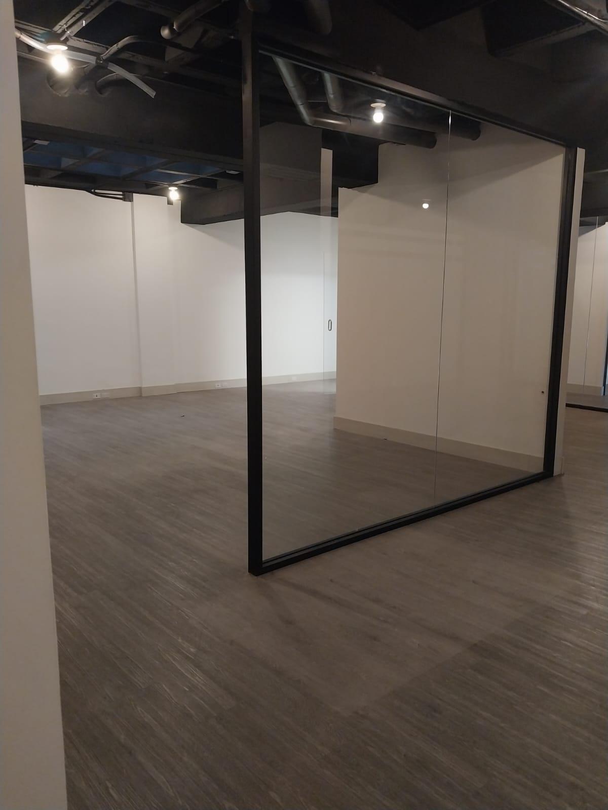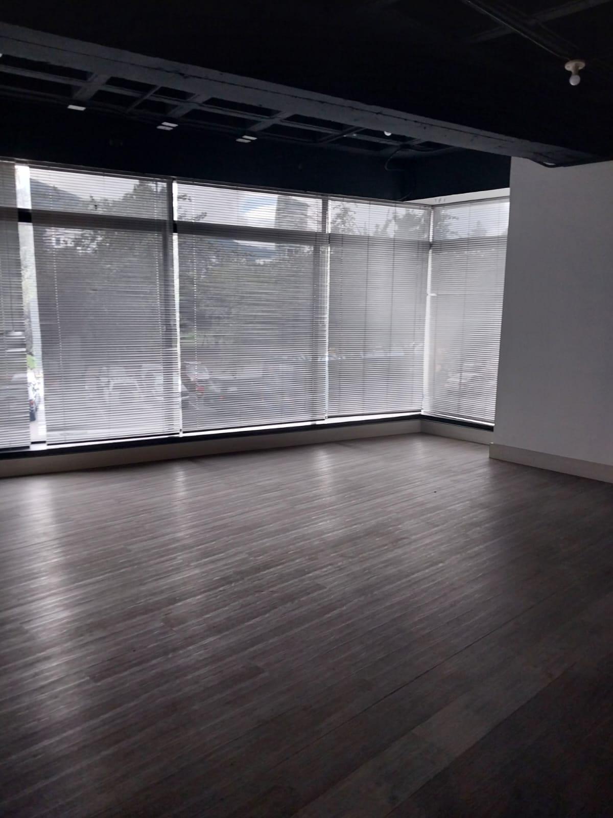2 parqueaderos, 3 baños, cafetería, divisiones en vidrio, techo tipo industrial, primer piso, sin muebles, vista espectacular al parque de la Carolina.