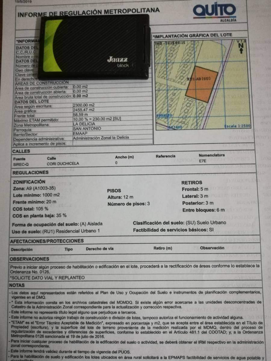 Vendo un lindo terreno de 2300 m2 en Mitad del Mundo sector de varios conjuntos habitacionales.